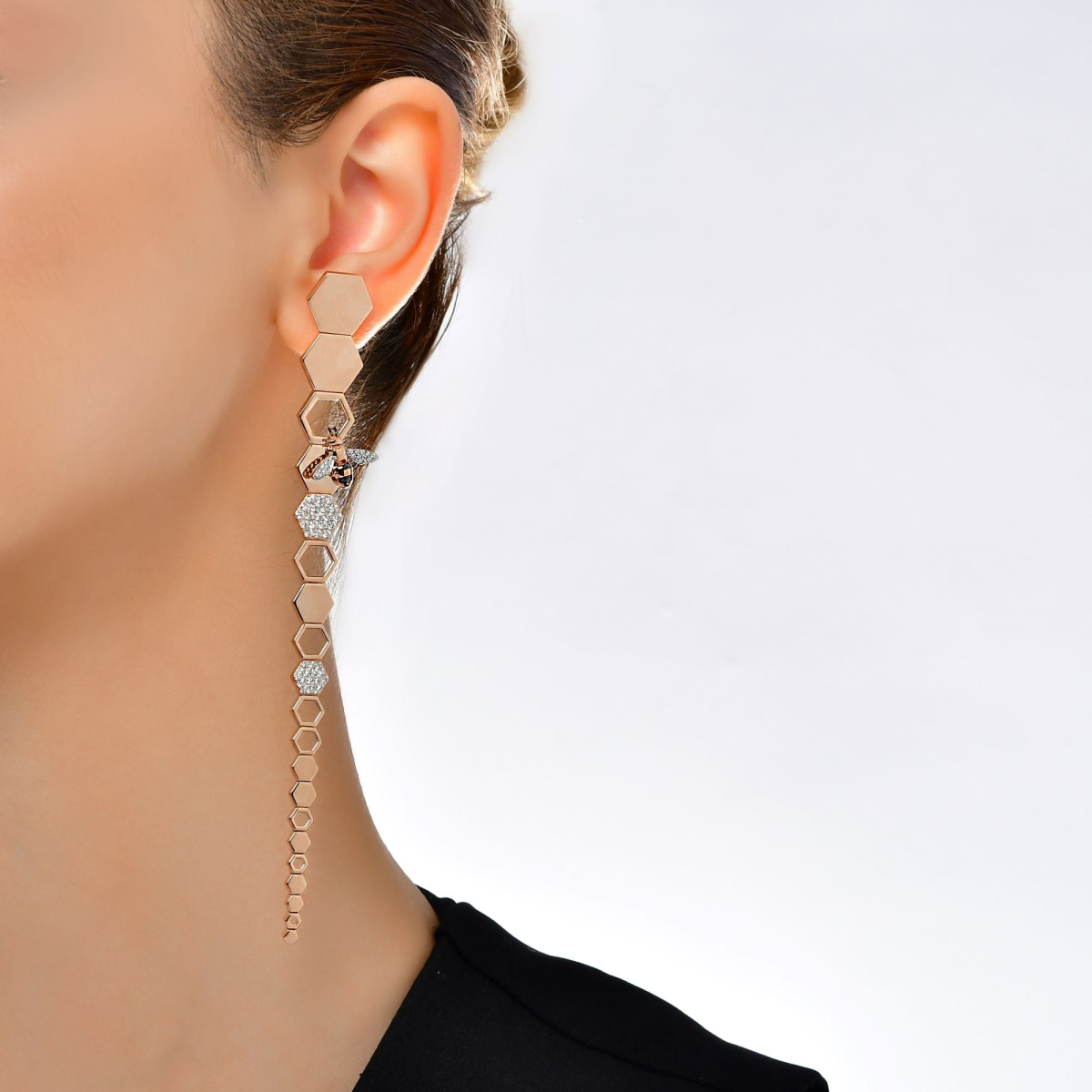 Купить Моно серьга Bee Goddess Honeycomb Розовое золото – премиальные серьги ZhannaKanGroup